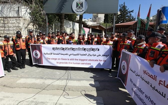 وسلَّم المشاركون في المسير رسالة مكتوبة باسم الدفاع المدني بهذه المناسبة للمجلس التشريعي والأمم المتحدة والصليب الأحمر ومجلس الوزراء الفلسطيني.