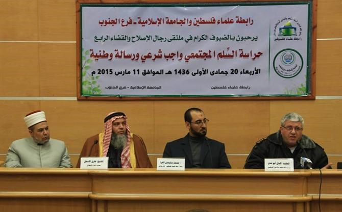 شاركت وزارة الداخلية والأمن الوطني في ملتقى رجال الإصلاح والقضاء الرابع ( حراسة السلم الاجتماعي واجب شرعي ورسالة وطنية ) الذي أقامته رابطة علماء فلسطين والجامعة الإسلامية بمحافظة خانيونس وذلك في قاعة المؤتمرات بالجامعة الإسلامية.