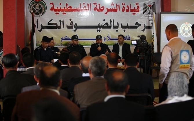 من ناحية أخرى رحب اللواء صلاح أبو شرخ مدير عام قوى الأمن الداخلية بالوفد الزائر قائلا: "نرحب بكم بوزارة الداخلية بهذا اللقاء الذي كان يجب أن يكون في أوقات سابقة".