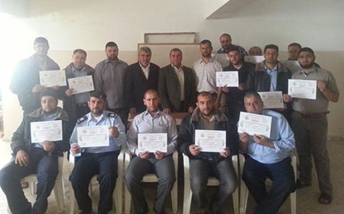وحضر اختتام الدورة أ. ناصر أبو زايدة مدير مكتب الهيئة في محافظة الشمال، والرائد أحمد الشيشي مسؤول معهد التدريب بالهيئة، والنقيب عطا الله جمعة مسؤول قسم التوجيه والإرشاد ومدرس الدورة الخطاط عبد الرحمن عسلية.