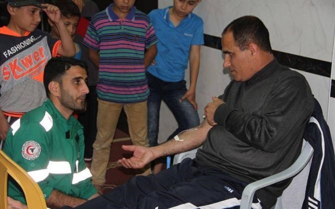 نظمت مديرية الخدمات الطبية العسكرية حملة للتبرع بالدم لأهالي حي الصالحين شمال قطاع غزة .