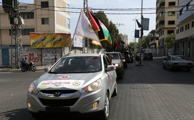 وانطلق المسير من موقع الجسر مقر قيادة كتيبة الوسطى مرورا على طريق صلاح الدين وصولاً لاستراحة الأمن الوطني على شاطئ بحر مدينة دير البلح.