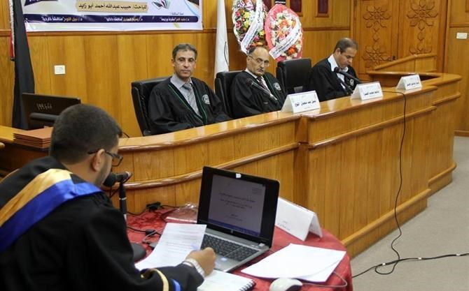 وأشرف على رسالة الباحث والتي تم مناقشتها في مبني القدس اليوم الاحد الاستاذ الدكتور ماجد محمد الفرا مشرفاً ورئيساً والدكتور نبيل عبد شعبان اللوح مناقشا خارجياً والدكتور وسيم اسماعيل الهبيل مناقشاً داخليا.
