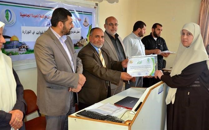 وحضر لقاء التكريم عميد كلية العودة الجامعية د. كمال تربان، ونائبه الأكاديمي د. هشام المغاري، ونائبه الإداري أ. إسماعيل الديراوي، ومن هيئة التوجيه السياسي والمعنوي أ. نبيل حجاج مدير التدريب في الهيئة، وعشرات الأخوات المشاركات في الدورة.