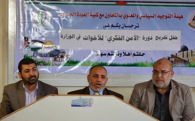 اختتمت هيئة التوجيه السياسي والمعنوي في وزارة الداخلية بالتعاون مع كلية العودة الجامعية "دورة الأمن الفكري" التي استهدفت عشرات العاملات في كافة الأجهزة الأمنية بالوزارة.