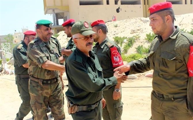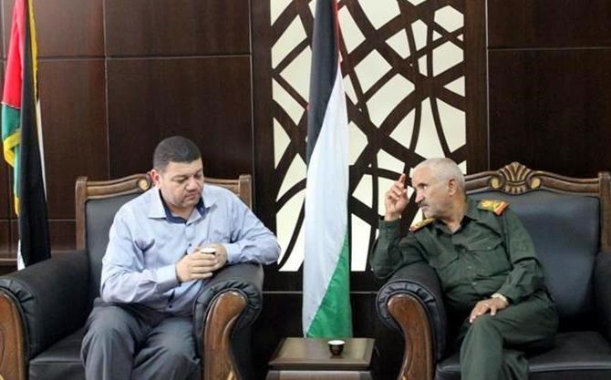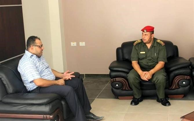 ورافق اللواء أبو عاذرة كل من قائد الشرطة العسكرية العقيد جهاد محيسن ونائب قائد قوات الأمن الوطني العقيد طارق أبو هاشم وقائد الكتيبة الوسطى العقيد إياد غانم ومدير مكتب القائد العام الرائد كمال راضي.