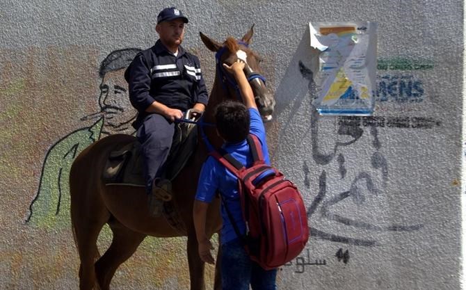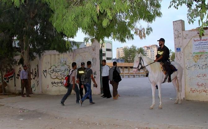 تنتشر شرطة الخيالة بالتزامن مع بدء العام الدراسي الجديد على المفترقات والشوارع الرئيسية المجاورة للمدارس في محافظة غزة وذلك لتأمين الطلاب وتوفير سبل الأمان لهم معطيةً بذلك مظهراً حضارياً.