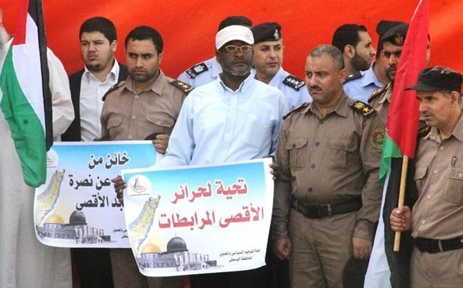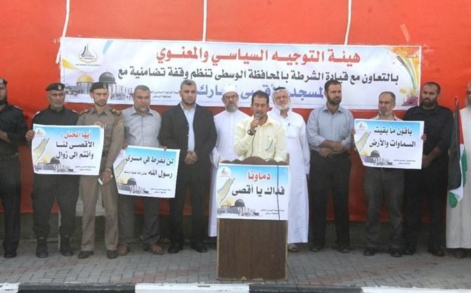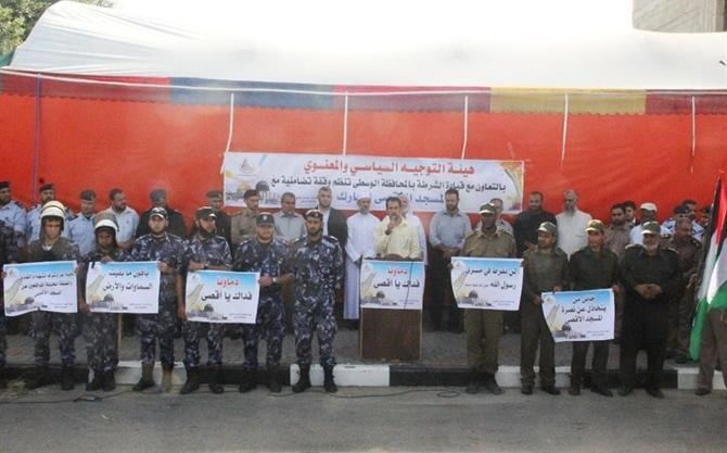نظمت هيئة التوجيه السياسي والمعنوي بالوسطى وشرطة المحافظة الوسطى وقفة تضامنية نصرة للمسجد الاقصى المبارك في الهجمة الشرسة من قبل الصهاينة وشرطة الاحتلال.