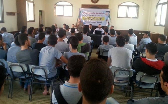 نظمت هيئة التوجيه السياسي والمعنوي بمحافظة غزة، أمس الأحد، ورشة عمل لطلاب مدرسة جولس الثانوية للبنين تحت عنوان "الوسطية في الإسلام".