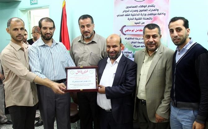 كَرَّمتْ وزارة الداخلية والأمن الوطني، اليوم الاثنين، وكيل الوزارة د. كامل أبو ماضي، بعد حصوله على درجة الدكتوراة عن اطروحته التي حملت عنوان "قياس أداء مؤسسات القطاع العام في قطاع غزة باستخدام بطاقة الأداء المتوازن".