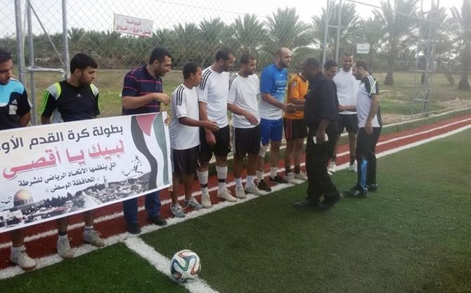 نظم الاتحاد الرياضي في شرطة المحافظة الوسطى بطولة كرة القدم تحت عنوان "لبيك يا أقصى" نصرة للمسجد الاقصى وتعزيزا لصمود اهل الضفة والقدس بمشاركة مراكز وإدرات شرطة المحافظة.