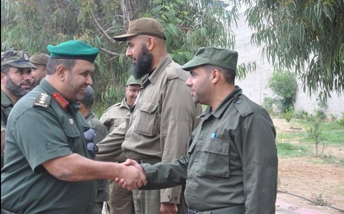 تفقد قائد قوات الأمن الوطني العميد نعيم الغول يرافقه مساعده لشئون التدريب العقيد محمد النخالة , صباح اليوم الاثنين , سير عملية التدريب في دورة تأهيل الضباط العاشرة بالمقر الرئيسي للإدارة العامة للتدريب "موقع الشهيد عبد العزيز الرنتيسي" شمال القطاع.