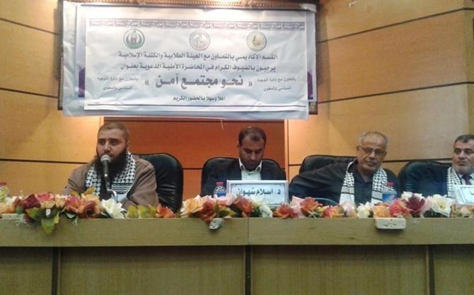 نظمت هيئة التوجيه السياسي والمعنوي بمحافظة خانيونس بالاشتراك مع الكتلة الإسلامية وإدارة كلية العلوم والتكنولوجيا ندوة لطلبة الكلية بعنوان "نحو مجتمعٍ آمن".