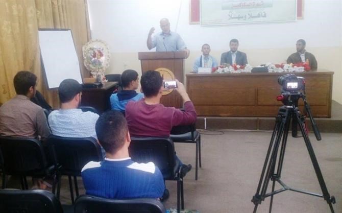 نظمت هيئة التوجيه السياسي والمعنوي في محافظة خانيونس جنوب قطاع غزة بالاشتراك مع الكتلة الإسلامية لقاءً سياسيًا لطلاب كلية مجتمع الأقصى بعنوان "انتفاضة القدس ... التحديات، وفرص النجاح".