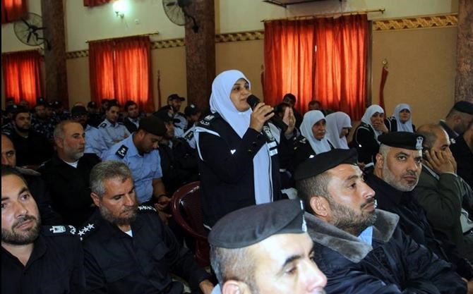 بدوره نوه العميد خلف على ضرورة ترسيخ مفهوم الثقافة الأمنية لدى أبناء الشرطة مبيناً أهمية التعامل مع المواطنين بحكمة وروية مع الأخذ بعين الاعتبار احترام صمود المواطنين خلال الحروب والاعتداءات الصهيونية على القطاع.