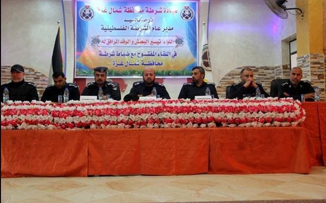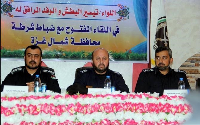 نظمت شرطة محافظة شمال غزة الأحد لقاءً مفتوحاً لضباطها مع مدير عام الشرطة الفلسطينية اللواء تيسير البطش ومساعده العميد محمد خلف والوفد المرافق له من قيادة الشرطة بالقطاع بقاعة الشمال بمنطقة بيت لاهيا.