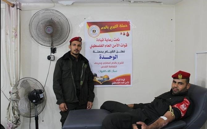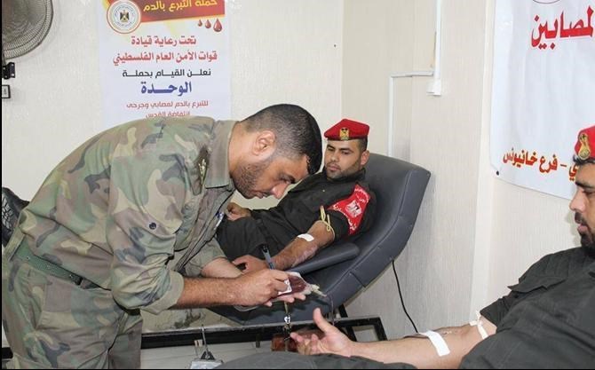 نظمت قوات الأمن العام حملة للتبرع بالدم، بمشاركة الأمن الوطني والشرطة العسكرية، وذلك في جمعية بنك الدم المركزي بمحافظة خانيونس جنوب القطاع.