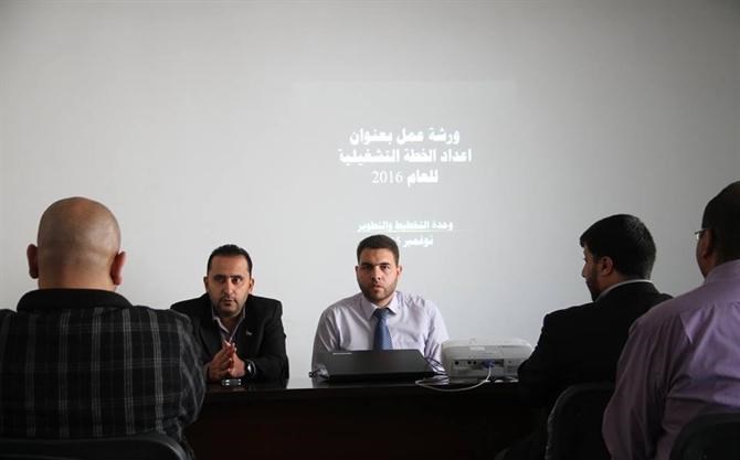 بدوره, استعرض أ.بلال أبو شنب مدير التخطيط المؤسساتي كيفية وضع الخطة التشغيلية للعام 2016 ونوعية التخطيط وأهميته ومكونات الخطة الاستراتيجية ومكونات الخطة التشغيلية.