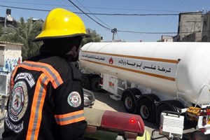 "الدفاع المدني" يسيطر على حريق بشاحنة لنقل الغاز وسط قطاع غزة