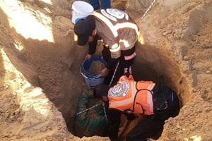 الدفاع المدني ينقذ عامل انهال عليه بئر لتفريغ مياه الصرف الصحي برفح
