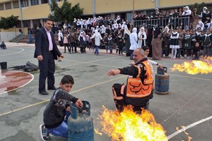 تدريب الدفاع المدني بخانيونس يُلقي محاضرة حول " الحرائق وطرق مكافحتها"