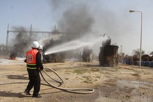 الدفاع المدني بالوسطى ينفذ مناورة تدريبية في محطة توليد الكهرباء