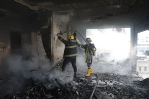 صور الدفاع المدني يتعامل مع استهداف منزل عائلة "أبو السعود" برفح