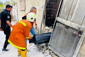 أطقم الدفاع المدني تجري تفقداً لأحد المنازل المستهدفة في بيت حانون