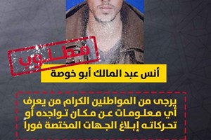 مطلــوب للأجهــزة الأمنــية: المدعو: أنس عبد المالك أبو خوصة
