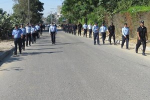 مركز شرطة الشرقية بخانيونس يُنظم مسيراً عسكرياً