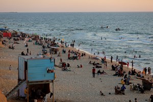 اصطياف المواطنين بغزة على شاطئ البحر وعدد من الأماكن الترفيهية