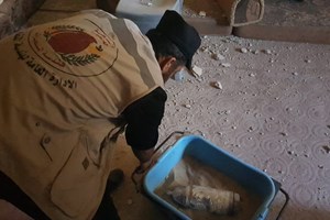 هندسة المتفجرات تتعامل مع "قذيفة لم تنفجر" من مخلفات القصف الإسرائيلي