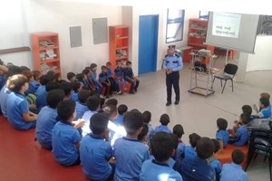 مرور خان يونس يختتم محاضرات توعوية لطلاب مدرسة ابتدائية
