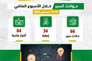 المرور: 34 إصابة في 66 حادث سير خلال الأسبوع الماضي