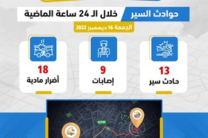 المرور: 9 إصابـات في 13 حادث سير خلال الـ 24 ساعة الماضية