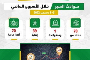 المرور: وفاة و39 إصابة في 70 حادث سير خلال الأسبوع الماضي