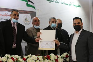 "التوجيه السياسي بخانيونس وحركة حماس" يُكرمان عوائل شهداء العدوان