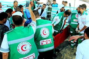 تعامل الخدمات الطبية مع شهداء ومصابين جراء استهداف الاحتلال منزلين غرب غزة