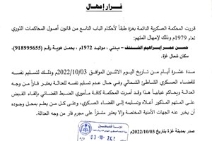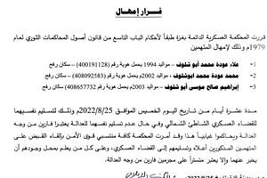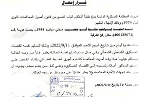 المحكمة العسكرية تمهل المتهم" أبو مغصيب" عشرة أيام لتسليم نفسه
