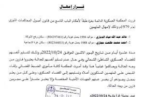 المحكمة العسكرية تصدر حكمَي "إعدام" بحق متخابرَين مع الاحتلال
