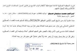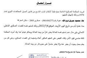 المحكمة العسكرية تُمهل ثلاثة متهمين 10 أيام لتسليم أنفسهم