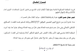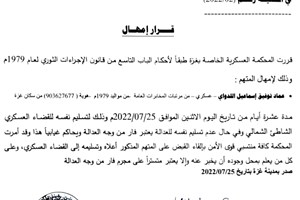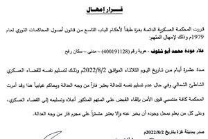 "المحكمة العسكرية" تمهل المتهم "اللداوي" عشرة أيام لتسليم نفسه