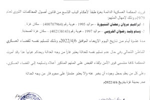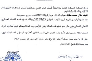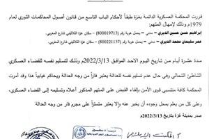 المحكمة العسكرية تُمهل المتهمين "عطايا والحزين" عشرة أيام لتسليم نفسيهما