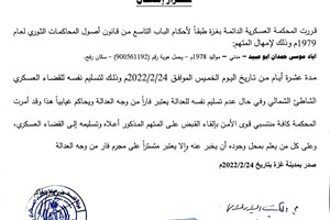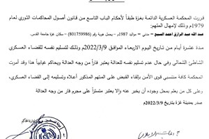 "المحكمة العسكرية" تمهل المتهم "السبع" عشرة أيام لتسليم نفسه