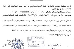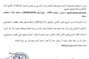 "المحكمة العسكرية" تمهل المتهم "أبو عبيد" عشرة أيام لتسليم نفسه