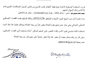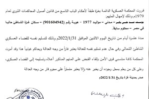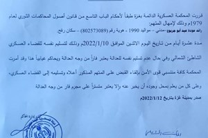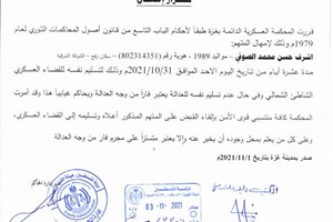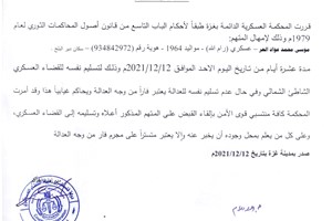 "المحكمة العسكرية" تُمهل المتهم "بكر" عشرة أيام لتسليم نفسه