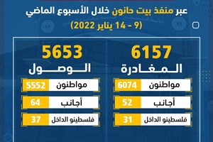 6157 مغادراً و5653 وافداً عبر منفذ بيت حانون الأسبوع الماضي