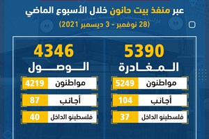 5390 مغادراً و4346 وافداً عبر منفذ بيت حانون الأسبوع الماضي