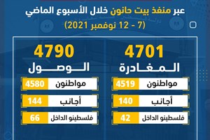 4701 مغادراً و4790 وافداً عبر منفذ بيت حانون الأسبوع الماضي