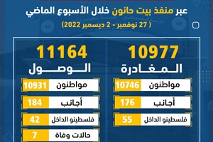 10977 مغادراً و11164 وافداً عبر منفذ بيت حانون الأسبوع الماضي